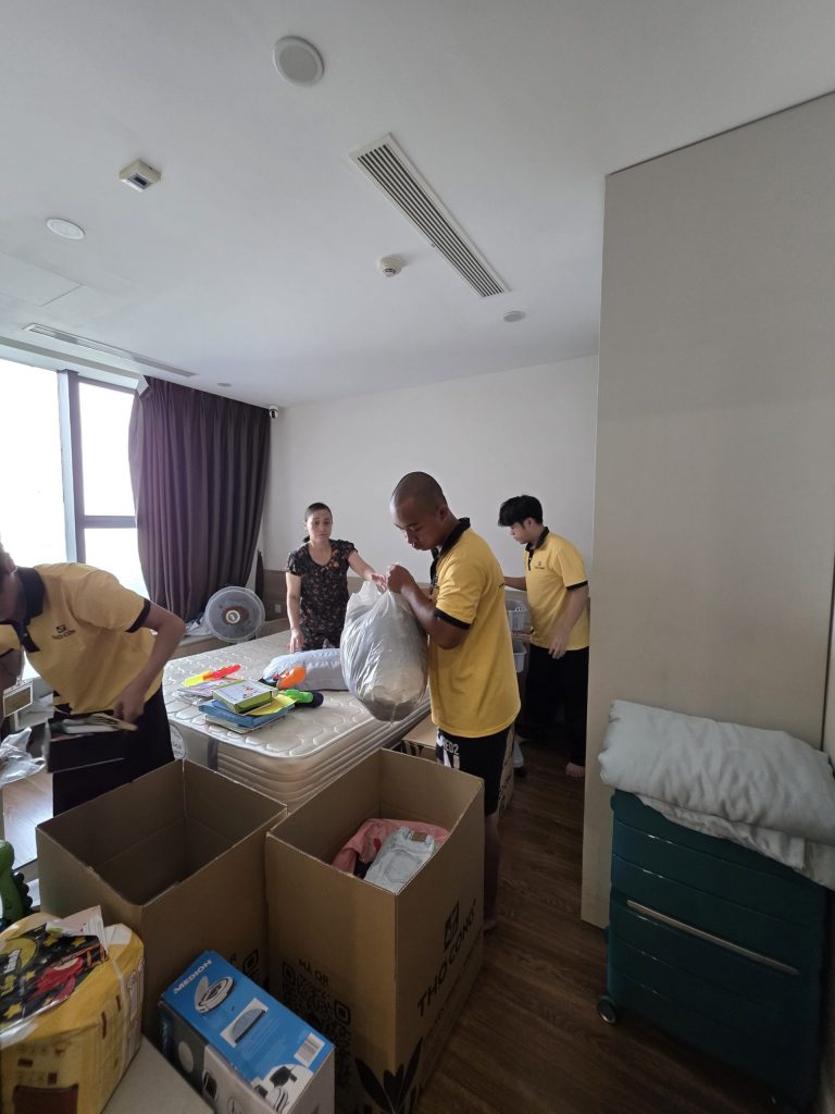 - Đóng gói chuyên nghiệp: Sử dụng vật liệu đóng gói tiêu chuẩn (thùng carton, màng bọc PE, xốp nổ) cho từng loại đồ đạc, kể cả đồ dễ vỡ, đảm bảo tài sản được bảo vệ tối đa.